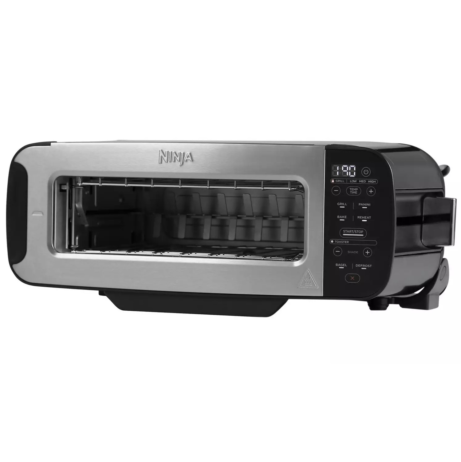The toaster that flips to grill, bake and press. The Ninja Foodi 3-in-1 Toaster, Grill & Panini Press is more than a toaster with 7 cooking functions: Toast, Bagel, Defrost, Grill, Panini, Bake and Reheat. In Toaster mode, enjoy even, edge-to-edge toasting with 7 shade settings to make perfect toast for everyone. The long, side slot easily fits artisan bread, 2 slices of bread or 2 bagel halves – the bagel setting automatically toasts bagel halves to perfection using a higher temperature on the cut side for a golden outside and soft inside.