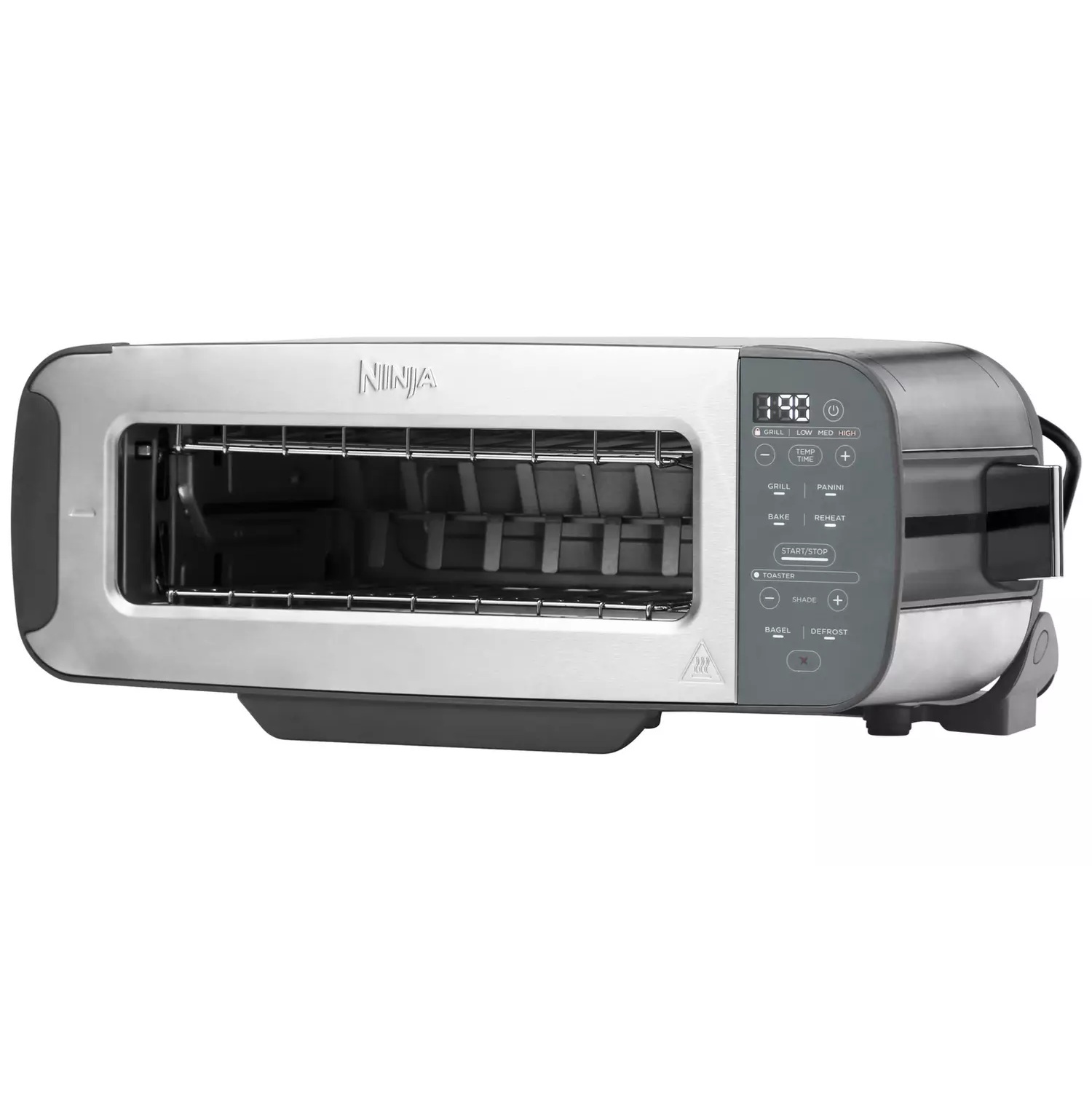 The toaster that flips to grill, bake and press. More than a toaster with 7 cooking functions: Toast, Bagel, Defrost, Grill, Panini, Bake and Reheat. Toaster mode – Enjoy even, edge-to-edge toasting with 7 shade settings to choose from. Easily fit 2 slices of bread or 2 bagel halves. Grill mode – Flip to transform from a vertical toaster into a grill and panini press. Create snacks and meals in minutes, from cheese on toast and loaded bagels to paninis and toasted sandwiches. Bake croissants and pastries. Reheat leftover pizza slices.